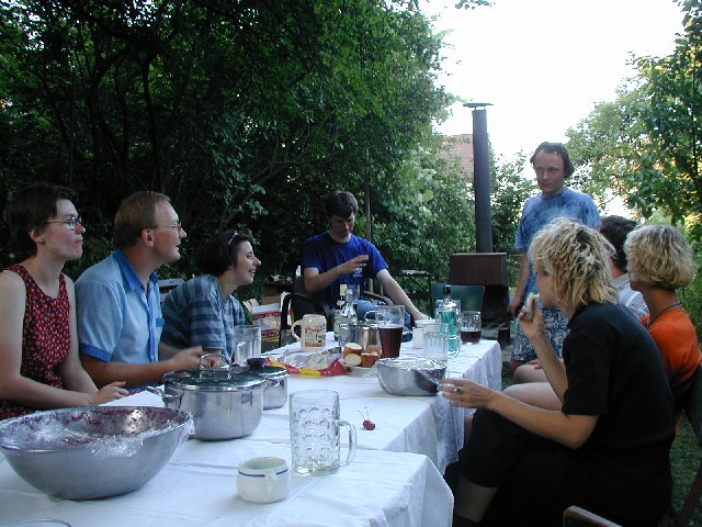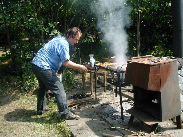 ...zatímco Pavel bojoval s grilem. |